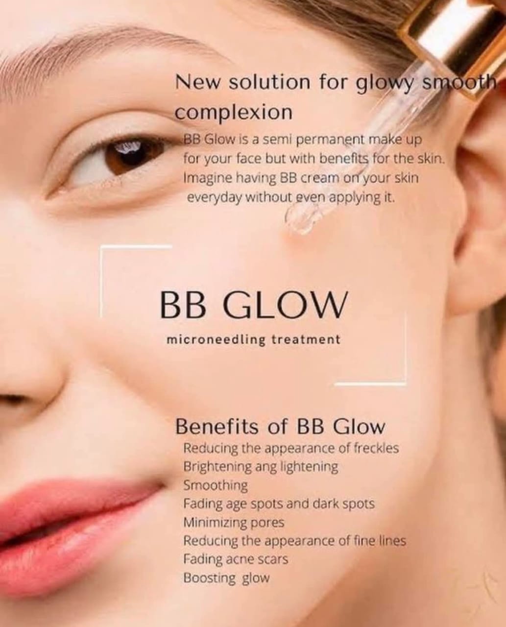 BB glow treatment is a semi-permanent foundation treatment that uses microneedling to deposit a tinted serum into the top layer of the skin, providing a flawless, airbrushed look that lasts up to six months